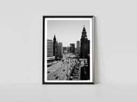 Step into the vibrant heart of Liverpool with our captivating cityscape print, featuring the iconic Liver Building as the centrepiece.